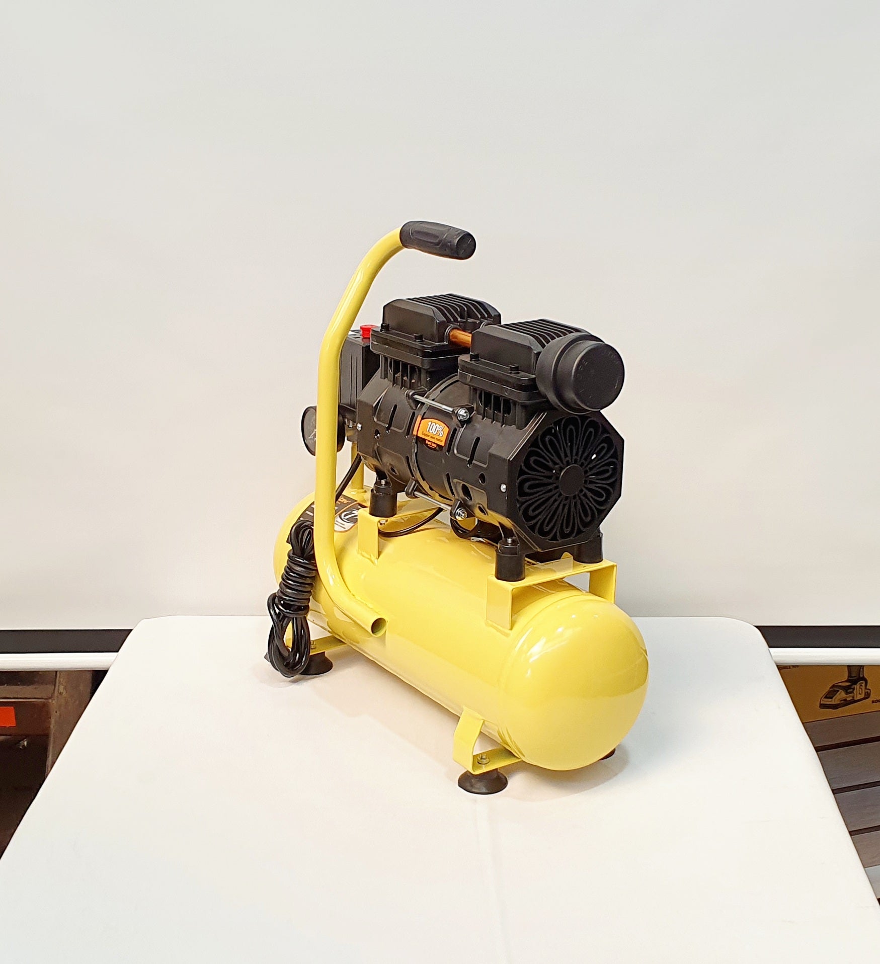 Compresor de aire libre de aceite y silencioso de 9 litros.
