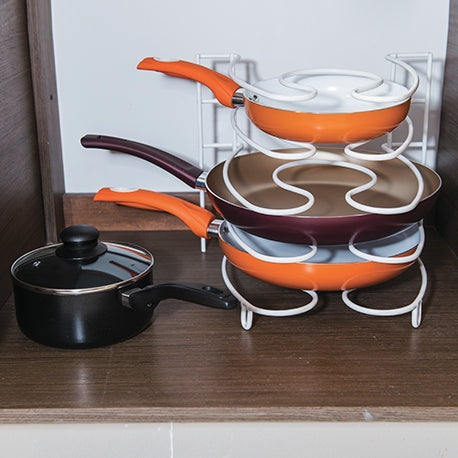 Ahora tus sartenes tendrán un sitio más cómodo y funcional con el porta sartenes vertical con capacidad para 5 sartenes, para que los mantengas en buen estado y en un lugar de fácil acceso y manipulación.