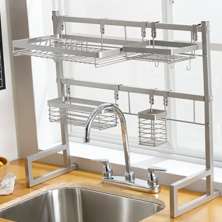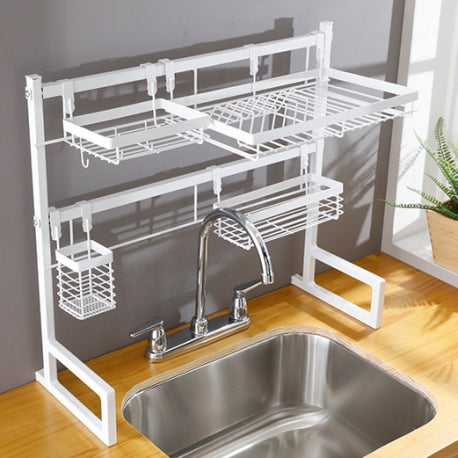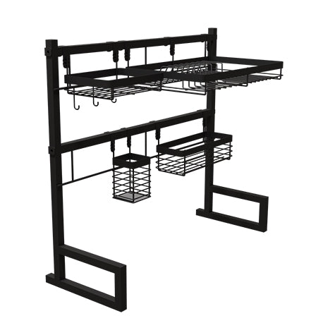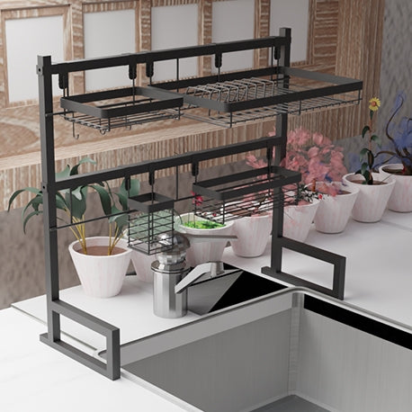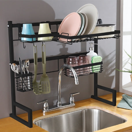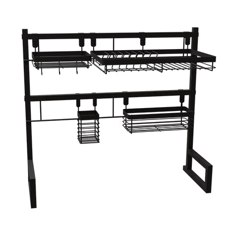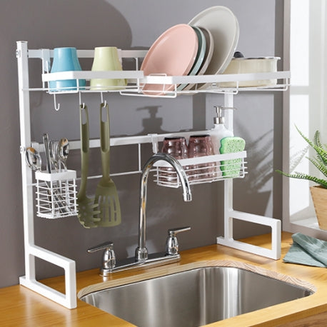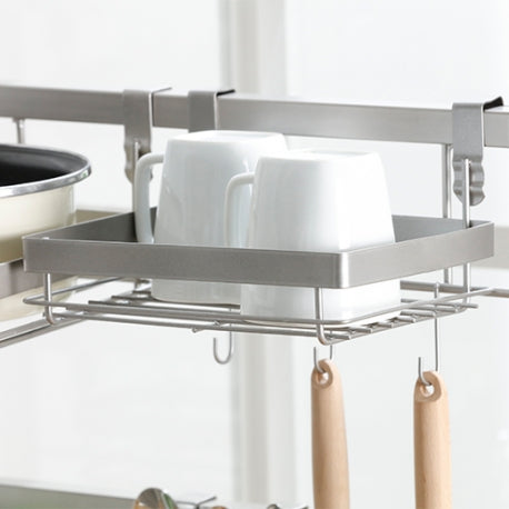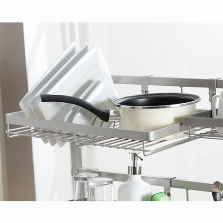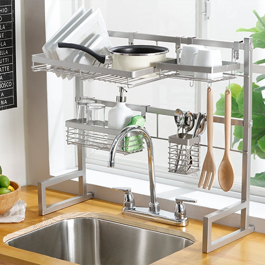 Nuestro Soporte auxiliar lavaplatos tiene un diseño moderno y dinámico que será tu mejor aliado al momento de ordenar tu vajilla, cubiertos, especias o lo que tu espacio requiera ordenar. Este contiene los siguientes accesorios colgantes: 1 Escurridor de platos · 1 Cubiertero · 1 Canasta con ganchos · 1 Canastilla multiusos, todo para que organices tus elementos como más lo necesites.