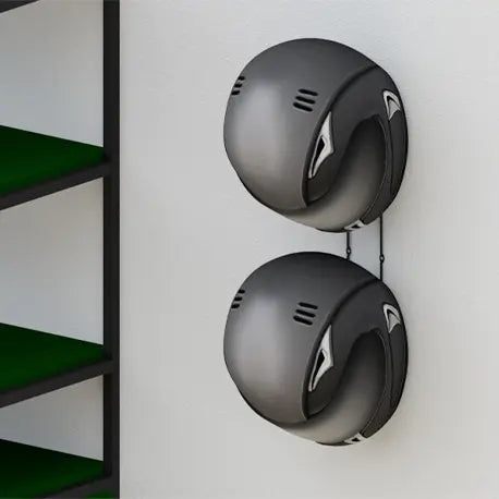 Organiza hasta 2 cascos en el Soporte cascos H doble. Optimiza tus espacios verticales y conserva tus cascos siempre ordenados y a la mano. Puede ser usado en tu hogar u oficina. Es un soporte resistente y seguro que maximiza tus espacios, y se ajusta fácilmente a la pared.