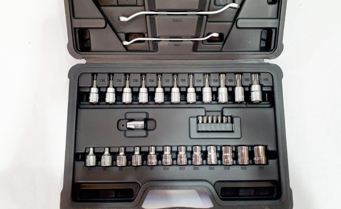 - 11 copas punta torx mando 3/8": T10,T15,T20,T25,T27,T30,T40,T45,T50,T55,T60.